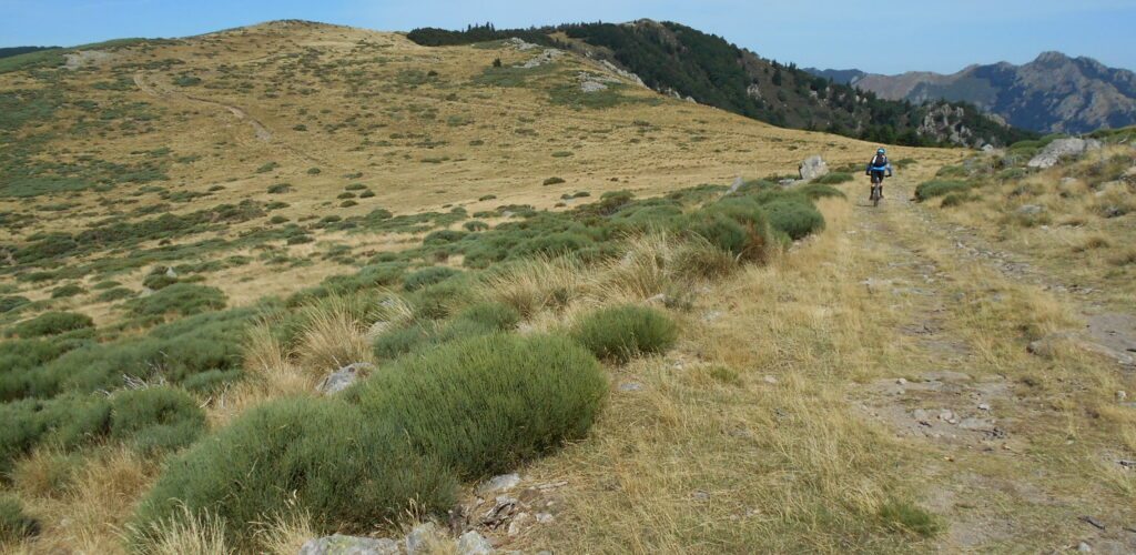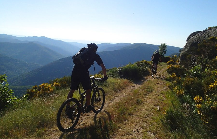 Les premiers sommets des Cévennes y sont déjà visibles et l’imposant massif du Tanargue nous dévoile ses chemins au détour du labyrinthe de murettes et de chemins de pierres issus de l’ancienne activité agricole. Notre progression aérienne sur les lignes de crêtes sera jalonnée de points de vue dégagés qui offrent des panoramas saisissants sur le Parc Naturel Régional des Monts d’Ardèche méritant bien son label de Geopark. Traversant successivement la corniche du Vivarais, les châtaigneraies, les oliveraies puis les gras, les senteurs des forêts et des garrigues méridionales nous reviennent.